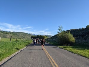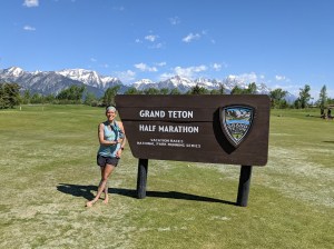 Three hours after we started I decided to get in line for the Grand Teton Half Marathon sign photo op. I texted her and told her where I was. About 15 minutes later she texted back and told me she was already at her car.