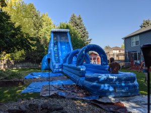After the run I did one of those paint and drink things with a friend. And that evening I went to a friend’s birthday bash, which included a 27-foot tall water slide! The slide was such a blast!