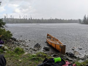The water on the lake looked angry. Small white caps dotted the water. There was no fucking way were going anywhere until the weather calmed down. After 10-15 minutes the white caps disappeared. Although the wind still made paddling challenging, we at least made it to camp.