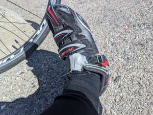 I didn’t start my ride quite when I wanted to because I forgot that a strap my right cycling shoe broke. It’s the one that tightens the shoe near my ankle. It’s the most important strap on my shoe.