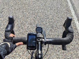 My turnaround was a parking lot with information boards about the byway. It was a nice spot to program the data screens on my watch to match those of the Edge as closely as possible. I also had to connect my speed and cadence sensors to my watch.