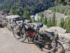 The Mesa Falls Scenic Byway is home to Upper and Lower Mesa Falls. The traffic on the rode is low and slow enough for me to feel like I’m not going to get hit even though there is no shoulder to ride on.