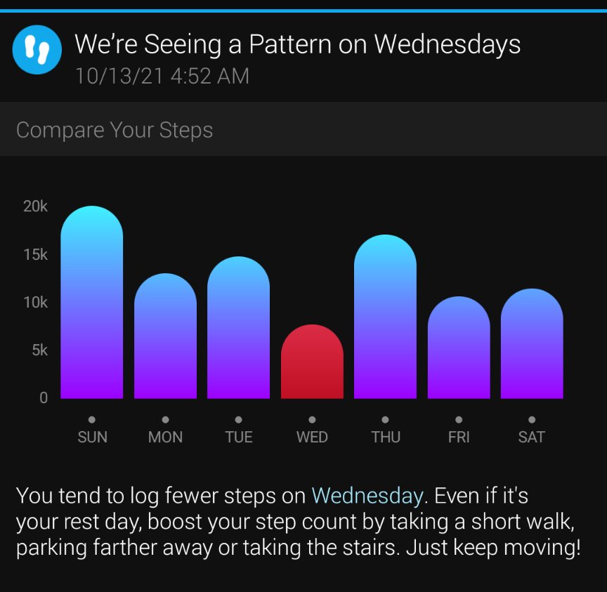 Yes, Wednesdays have been a rest day. And no, I haven’t been making an effort to get all my steps in for the day. But this week Wednesday is a run day.