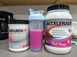 Before I started reading The Paleo Diet for Athletes, I would wake up, drink a glass of water and head out the door for my run. Now, I drink a little bit of Accelerade before my runs to give my body a little bit of fuel for my workout. Even though most of my runs during the work week aren’t all that long, I figure it doesn’t hurt to get into the habit.