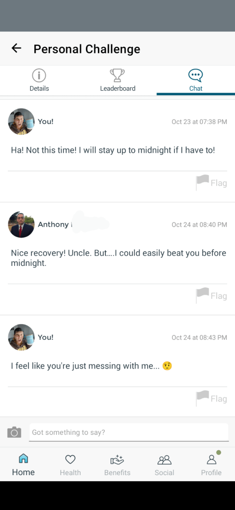 I attempted to not sync the steps from my watch to the app so I could give my boss a false sense of security. But when I went online to check his number of steps, mine managed to sync. Then I noticed a message from him.