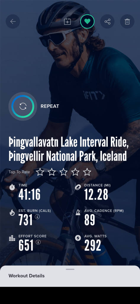 I picked an intermediate ride of about 40 minutes, and the resistance of the ride was weak sauce. Since I ended up adjusting my resistance manually, it felt like there was no point in having my phone connected. Then I realized I wouldn’t get all my cool ride stats saved on my phone if I didn’t, so I guess the Chromecast wasn’t a waste.