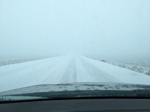 After my run I loaded up my car and hit the road for my dad’s. Along the way I hit some winter weather. At one point the fastest I could go was about 40 mph. But once I got past Elko the sun came out, and I was able to cruise.