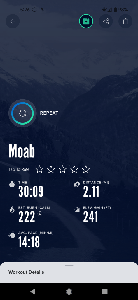 Commentary: I was pretty sad to be running on the treadmill, but fuck if I was going to run in the dark with a temp of 7°F. I miss Southern Utah.