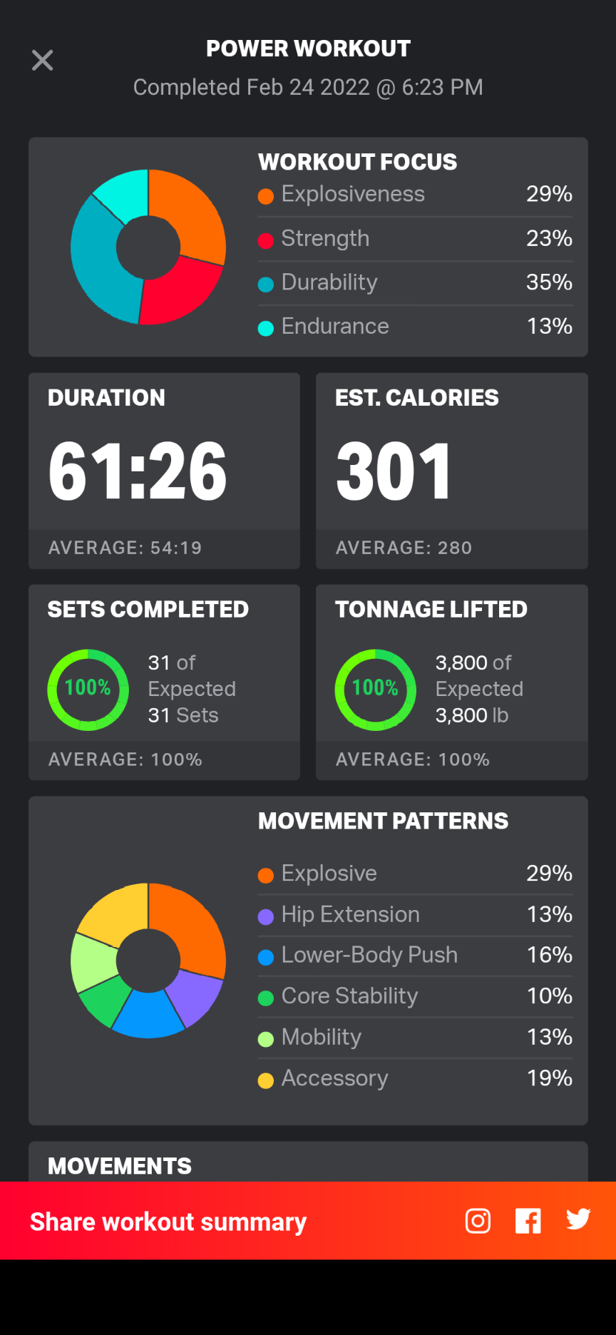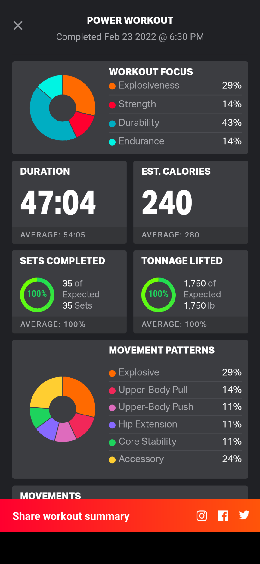 How It Felt: Wednesday – Since it was my first time doing hill repeats on the treadmill, I wasn’t sure how fast to go. I slowly upped my speed with each repeat, and I think a 10 min/mi is just about right for now. It’s hard, but sustainable for a full minute at 4.5% incline. The strength workout was good, but after the last block, it seemed a little mild.