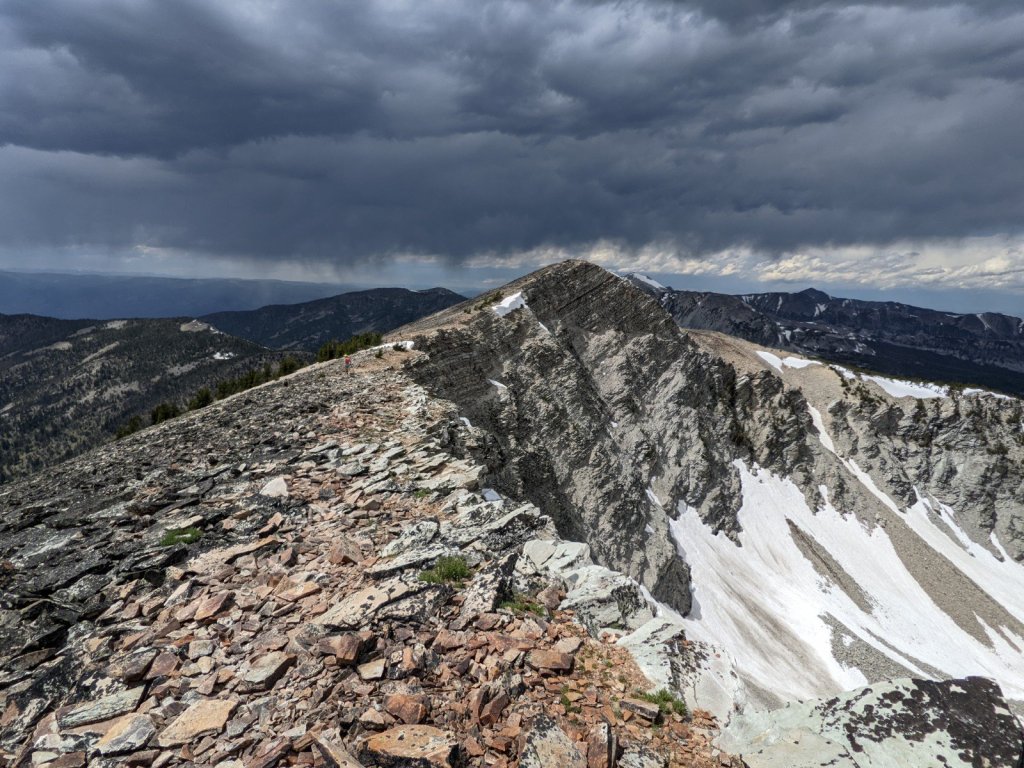 I don’t know if I ate too much at the aid station, if it was the pickle juice, or the altitude, but the ascent to the first “point” in the scree field was miserable and slow. The whole time I felt like I might vomit. I had to stop multiple times until the nausea passed. I thought the first “point” was the last one and it was all downhill from there. So, when I started the second scree field ascent, I was beyond bummed.