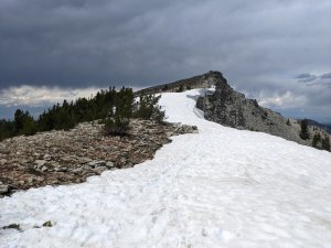 And boy did it get tough! Aside from the nausea and never-ending scree, a thunderstorm rolled in. The wind was wicked, and a few of the gusts almost knocked me over. Because of the wind, the rain pelted my tender flesh, and I had to cover my face to avoid the painful stings.