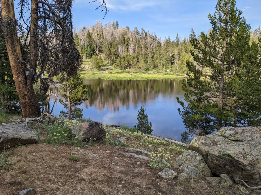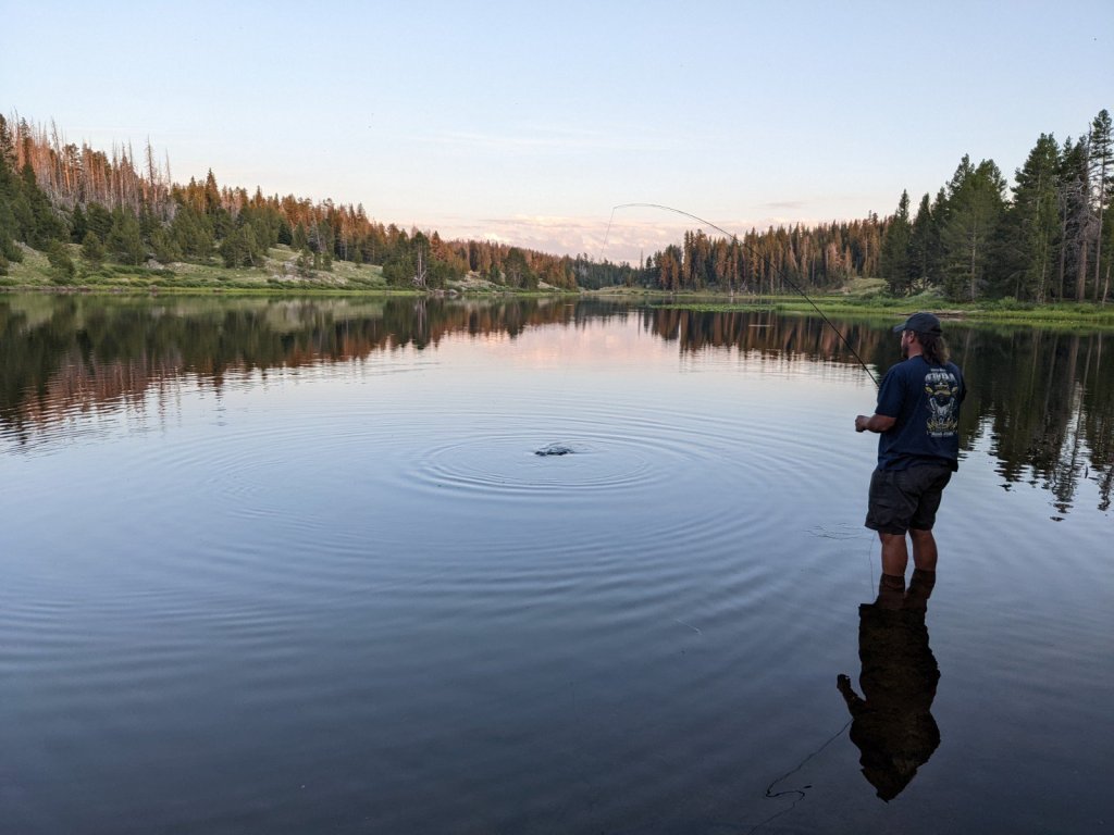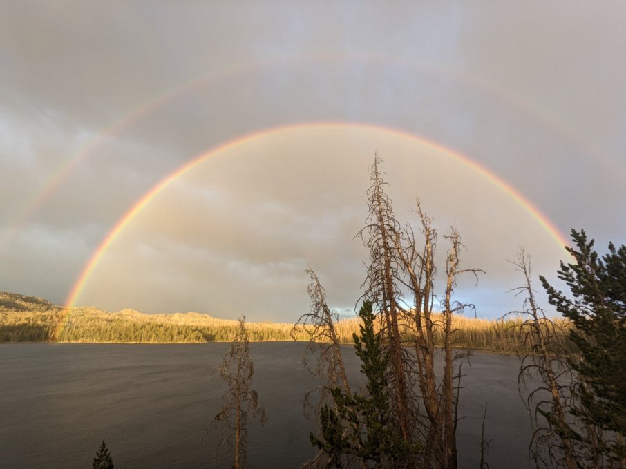 The lake itself was gorgeous, and we found a decent campsite. Unfortunately, we didn’t catch any fish. We didn’t even get a hit! But we did rinse off, get a nap in, and enjoy a few thunderstorms and a double rainbow.