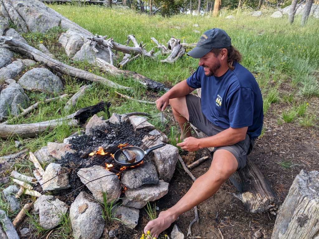 We usually catch and release, but my husband kept one for dinner. Like an idiot, I didn’t bring a fresh fuel canister for our stove. Luckily, some a-holes left an old grill by the fire pit that was perfect for our pot and pan. And who doesn’t like campfires?
