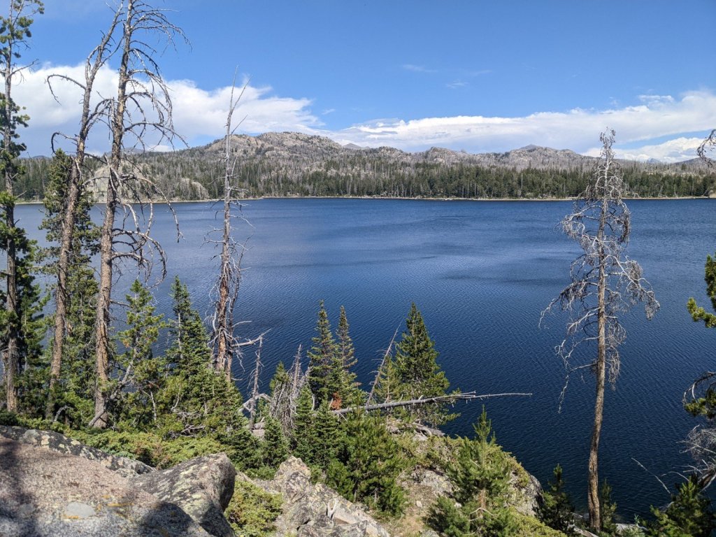 Thursday evening, my husband and I drove out to a trailhead in the Wind River Range and slept in my car. Friday morning we started our hike to a lake my friend had been talking about it. The mosquitos were absolutely horrible, so we doused ourselves in bug spray. It was also hot and dusty, so the six-mile hike up to the lake wasn’t the exactly awesome.
