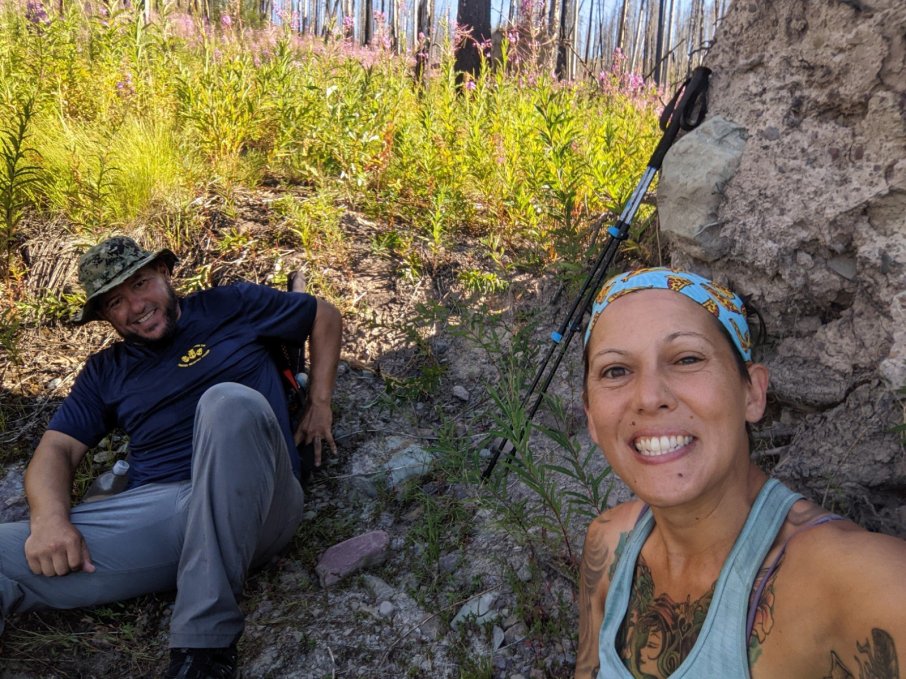 On Friday we got an early start to try to beat the heat. It almost worked. Most of the hike was through a burn scar, so the dead trees offered no shade or respite from the blazing sun. Thankfully, a large root ball from a fallen tree gave us a cool spot to take a break. Along with the blazing sun, the majority of the trail was overgrown. The constant bushwhacking and scratches from branches mentally wore us down.