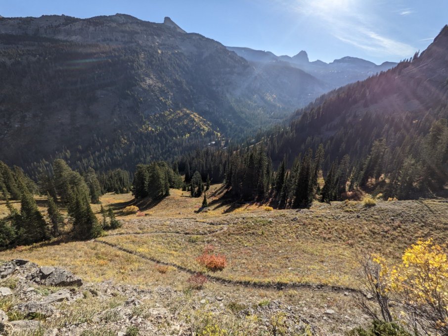 I love exploring new trails, even they take me to familiar places. On Saturday, I took Devil’s Staircase up to Alaska Basin, and took the South Teton Trail down. For the two miles through Alaska Basin I was on the Teton Crest Trail, but the rest of it new to me. All of it was gorgeous, and the weather was perfect. By mile 15 of 17 my legs were tired. My lower back hurt. I regretted not bringing ibuprofen.