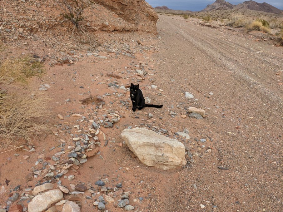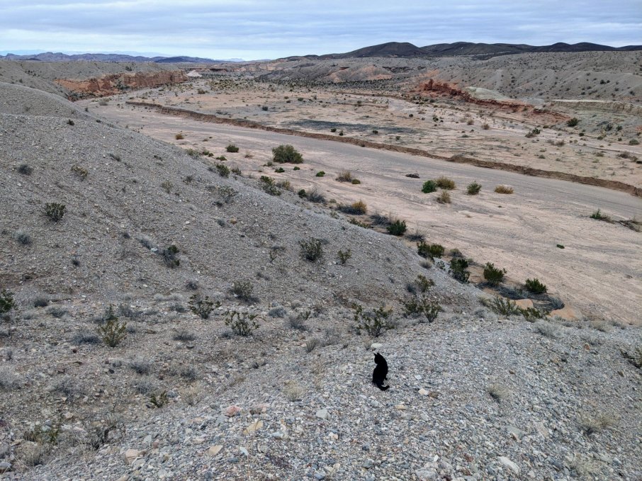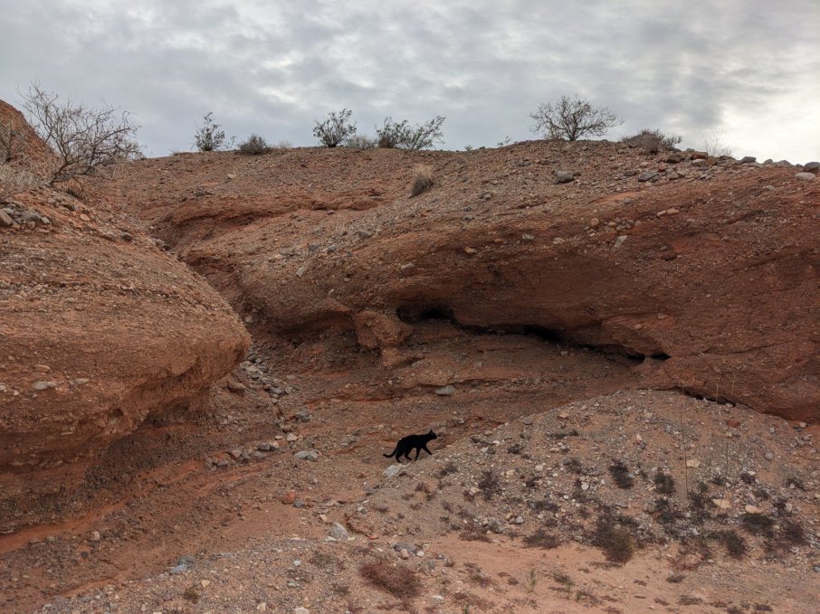 Back at the van, I cooked up some grub because I was starving. Afterward, I told Oreo we were going on a walk and opened up the van door. She hopped out, and I followed her. I stopped because I contemplated grabbing another layer, and I heard her meow. I looked down into the wash we parked next to, and there she was looking at me expectantly. Uh, I thought we were going for a walk? Stop faffing about! So as not to keep the princess waiting, I locked the van and followed my cat.