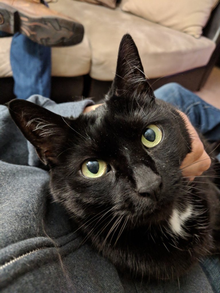 Oreo likely has a tumor in her thyroid, and possibly a minor internal bleed somewhere. The tumor is so small the vet couldn’t feel it, and they prescribed medication for it. They’re not 100% sure about the bleed, they just said she seemed a little anemic. The vet said she probably only had a couple of years left. My husband held me while I bawled my eyes out.