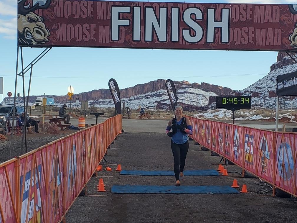 About two miles from the finish line, I pulled ahead of Ally. She was tired and nauseous, and I was excited to finish. I crossed the finish line, jumped into my husband’s arms, and wrapped my legs around him. Arches took me almost two hours more than Dead Horse. Considering I barely trained for the past two months, I’m extremely happy with my time.