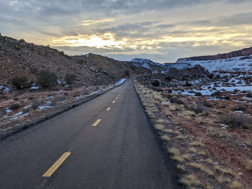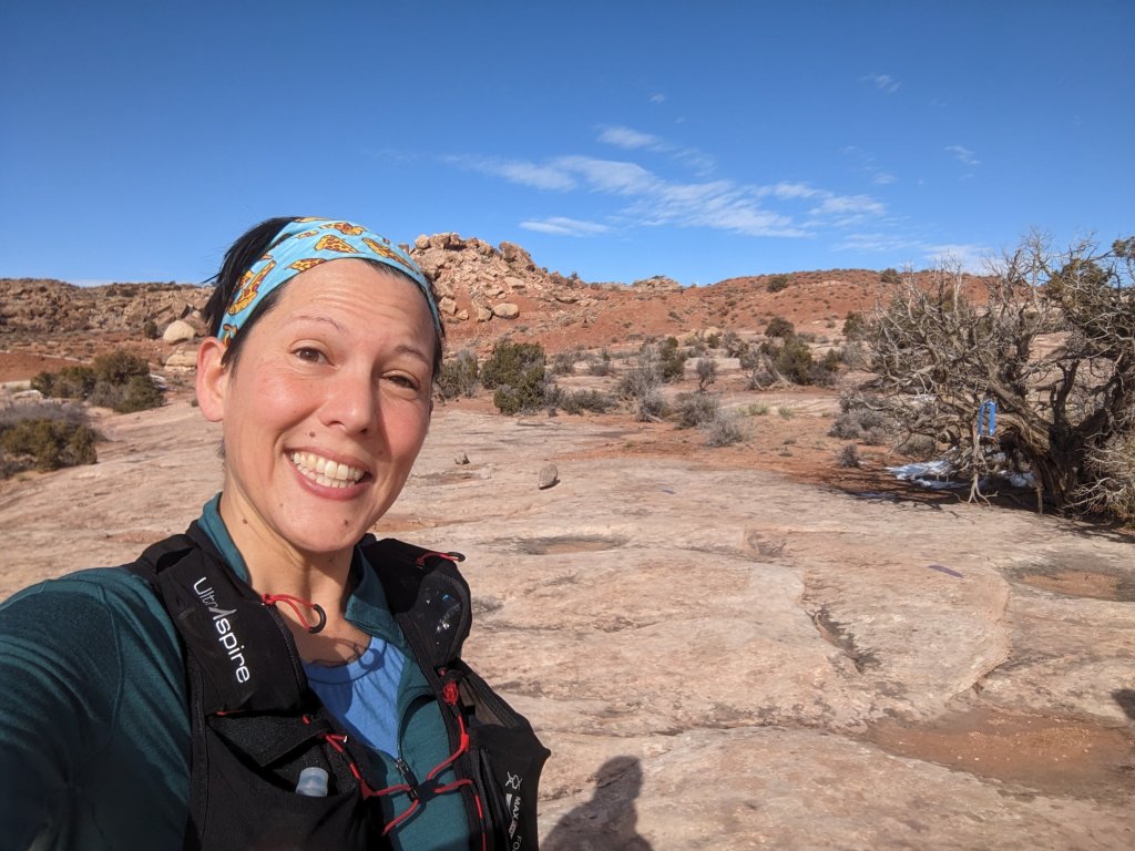 The trip to Moab started off rough because of the winter storm pelting frozen precipitation all over southeast Idaho. We made it to Moab in good time, and packet pick up was quick and uneventful. After a trip to the grocery store, we headed to our usual campsite. The melting snow made it a muddy mess, so we found a new home close to the airport. It also happened to be ten minutes from the start line.